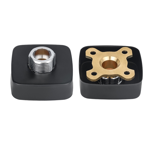 검정색 사각형 샤워 꼭지 플레이트. 핵심 목적은 벽걸이형 수도꼭지에 견고하고 평평하며 설치가 쉬운 베이스를 제공하는 것입니다. 이 제품은 황동과 탄소강의 복합 구조를 채택합니다. 벽과 수도꼭지 인터페이스에 직접 접촉하는 주요 힘과 연결 부품은 황동을 사용하여 장기적인 내식성과 연결 견고성을 보장합니다. 주요 지지 구조인 플레이트 본체는 고강도 탄소강으로 만들어져 전체에 필요한 지지 강성을 제공하고 장기간 응력으로 인한 변형을 방지합니다. 판체 표면은 전기 도금 및 기타 공정으로 처리되어 황금빛 외관을 나타내며 청소가 쉽습니다. 일반적인 수전 액세서리와 일치하고 설치 과정을 단순화하기 위해 사전 설치 구멍이 있는 표준 사각형으로 설계되었습니다.