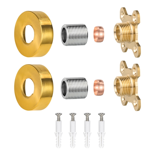 이 원형 샤워 장착 키트는 욕실 설치에 사용됩니다. 핵심 목적은 벽걸이형 수도꼭지를 위한 튼튼하고 평평하며 설치하기 쉬운 베이스를 제공하는 것입니다. 이 제품은 황동과 탄소강의 복합 구조를 채택합니다. 벽과 수도꼭지 인터페이스에 직접 접촉하는 주요 힘과 연결 부품은 황동을 사용하여 장기적인 내식성과 연결 견고성을 보장합니다. 주요 지지 구조인 플레이트 본체는 고강도 탄소강으로 만들어져 전체에 필요한 지지 강성을 제공하고 장기간 응력으로 인한 변형을 방지합니다. 판체 표면은 전기 도금 및 기타 공정으로 처리되어 황금빛 외관을 나타내며 청소가 쉽습니다. 일반적인 수전 액세서리와 일치하고 설치 과정을 단순화하기 위해 사전 설치 구멍이 있는 표준 사각형으로 설계되었습니다.